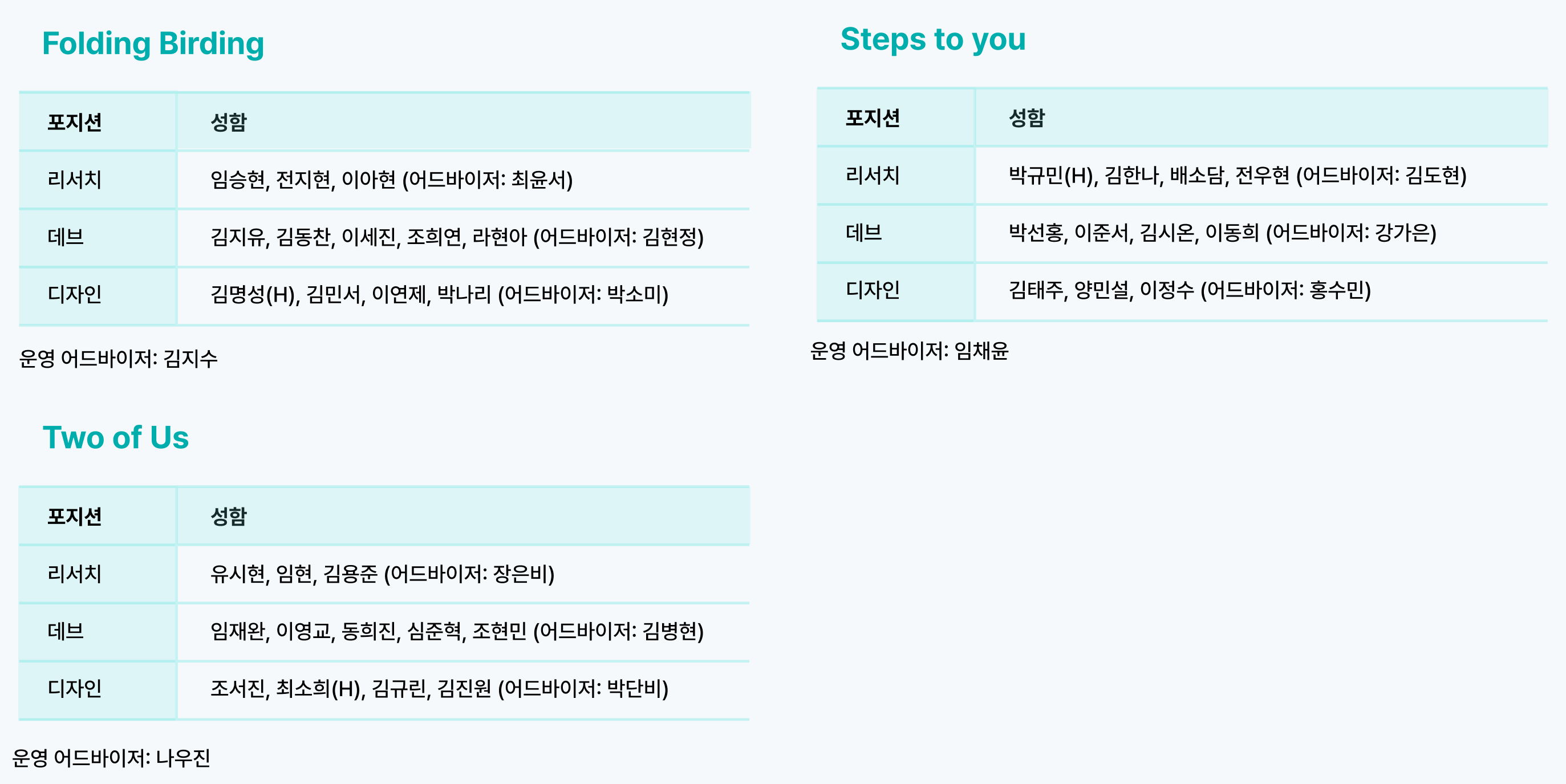 ๊ธฐ๊ฐ์ ๋ฌผ๋ก , ํดํ ๊ธฐ๊ฐ๊น์ง ์ ์ฑ์ ๋คํ์ฌ ํ๋ก์ ํธ๋ฅผ ์งํํ ์ฃผ๋์ด ํํ์ ๋ถ๋ค์ ๊ฒฐ๊ณผ๋ฌผ์, ์ด๋ฒ ๋ฆฌ๋๋ ํ์