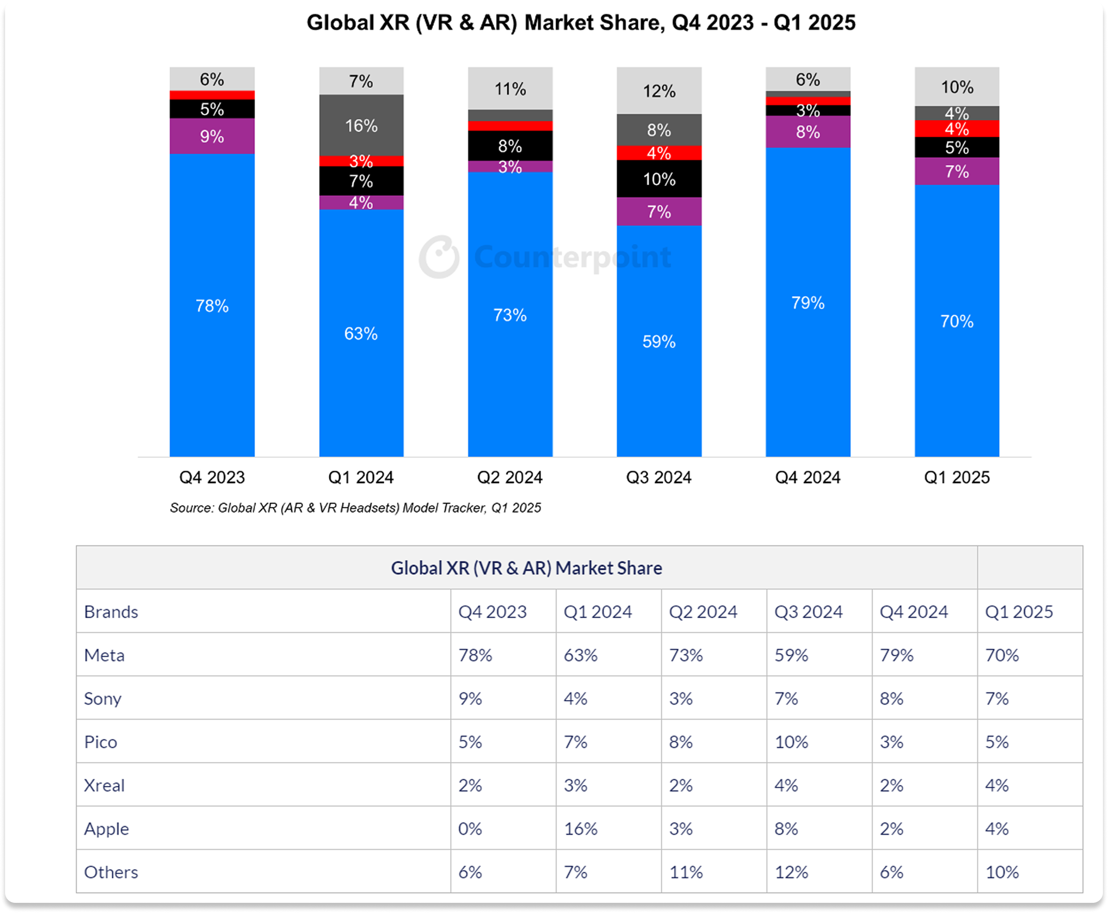 λ©νλ νμ¬ XR μμ₯μμ 70% μ μ μ¨μ μ°¨μ§νλ©° μμ₯μμ μ λλ₯Ό λ¬λ¦¬κ³ μμ΅λλ€. λ©ν νμ€νΈμ μΆμ μ΄μ κΉμ§λ§ ν΄λ VR μμ₯μ PCμ μ°κ²°λ κ³ μ¬μ μ₯λΉκ° νμνκ³ , μΈμμ΄ λ§μ΄ μλ €μ§μ§ μμ, λμ€μκ²λ μ§μ