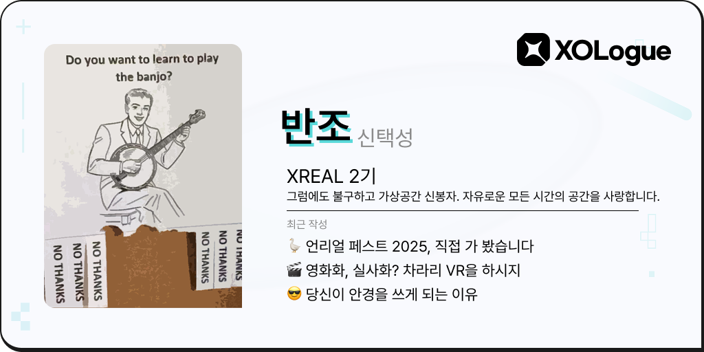 💌XREAL 10월 3주차 금요 뉴스레터 안녕하세요 구독자 여러분, 한 주의 마지막 출근날, 금요일에 처음 뵙겠습니다. 오늘부로, 수요 뉴스레터 이 주의 칼럼 외의 추가 콘텐츠, 금요 뉴스레터가 공식 발행됩니다. 금요 뉴스레터에서는, AI 칼럼, 인물 인터뷰, VR 게임 리뷰, XREAL 행사 등을 보실 수 있습니다. 수요일의 칼럼 & 기사 큐레이팅보다, 더 가볍고, 더 다양한 모습으로 찾아뵙겠습니다. |