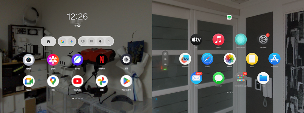 좌 : 안드로이드 XR 홈 | 우 : 비전 OS 홈 |