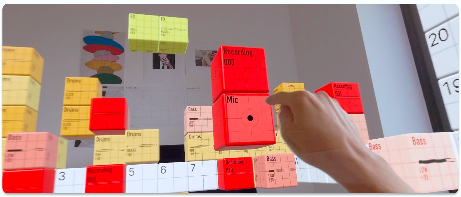해외의 XR 스튜디오 FUN AND AWE에서, 애플 비전 프로Vision Pro 전용 음악 조립 애플리케이션, 오퍼레이터OPERATOR를 공개했습니다. 오퍼레이터는 기존 음악 툴처럼 2D 화면에 트랙을 쌓는 게 아니라, 신스, 킥, 스네어, 하이햇 같은 단위의 소리가 공간 속 큐브처럼 떠 있고, 손으로 집어서 옮기거나, 비틀고, 늘려서 작곡하는 UX를 제시했습니다. |