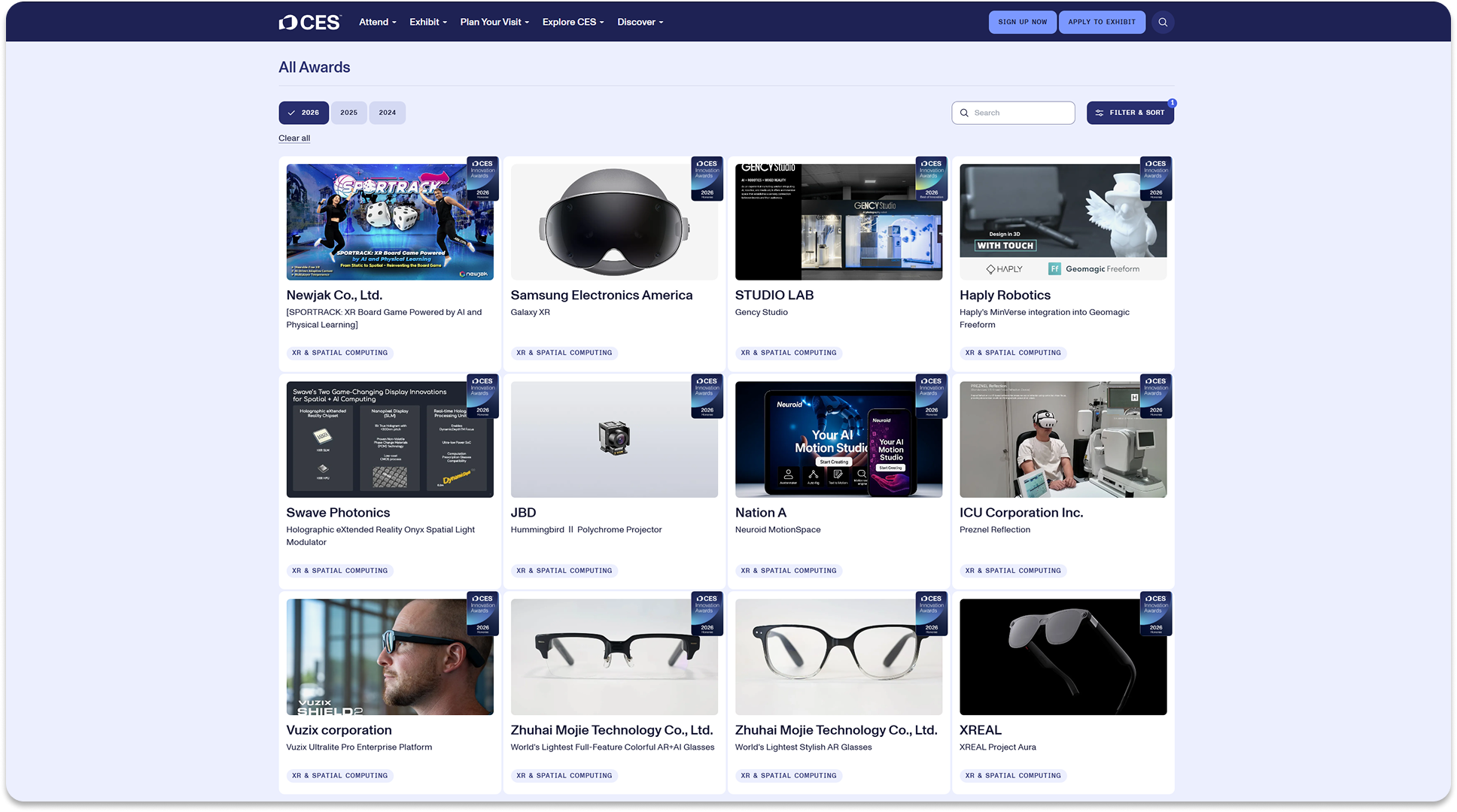 도합 12개의 혁신상이 제정된 CES 2026의 XR & 공간컴퓨팅 부문에서, 한국 기업 5곳이 최고 혁신상을 포함하여 수상에 성공했습니다. |