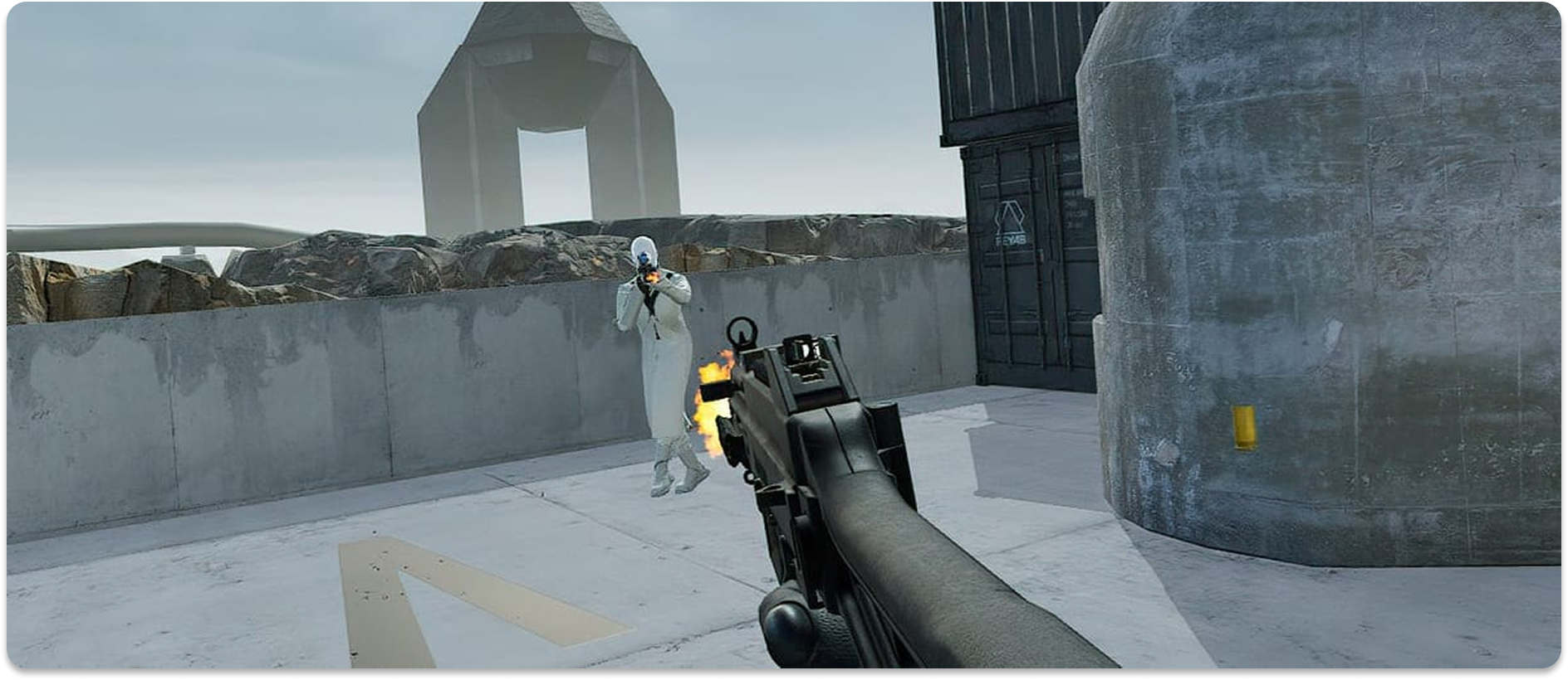 손가락만 까딱이는 기존 FPS 게임과 달리, 플레이어가 직접 몸을 움직여 팔을 휘두르고, 총을 조준하며, 방아쇠를 당깁니다. 상대 캐릭터도 똑같이 현실에서나 볼법한 행동을 하며, 둘 중 누가 총에 맞건 쓰러집니다. |