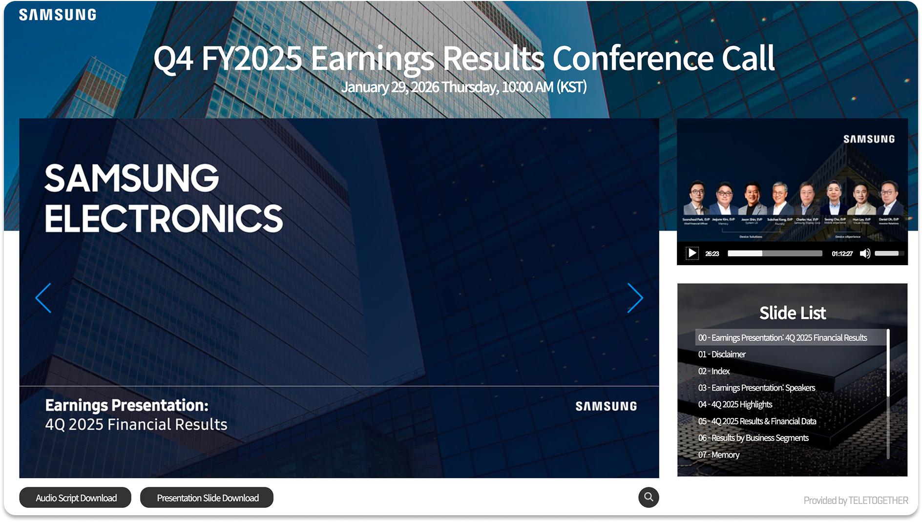 삼성의 어닝콜. 직접 듣느라 2시간이 걸린 것은... 아닙니다. |