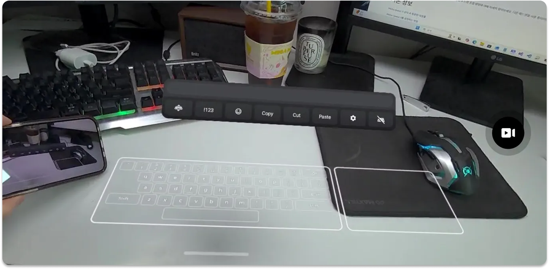 또한 공간 키보드와 터치패드(Surface Keyboard)가 추가되었습니다. 퀘스트 3 사용자가 실제 책상 바닥을 두드리면 이를 가상 키보드와 마우스로 인식하는 기능으로, 별도 장비 없이도 입력 정확도를 높일 수 있게 되었습니다. |