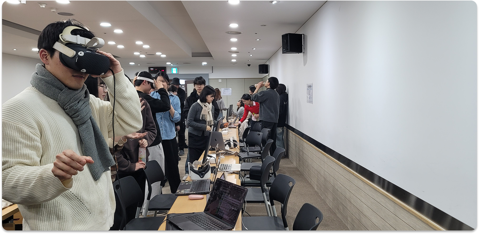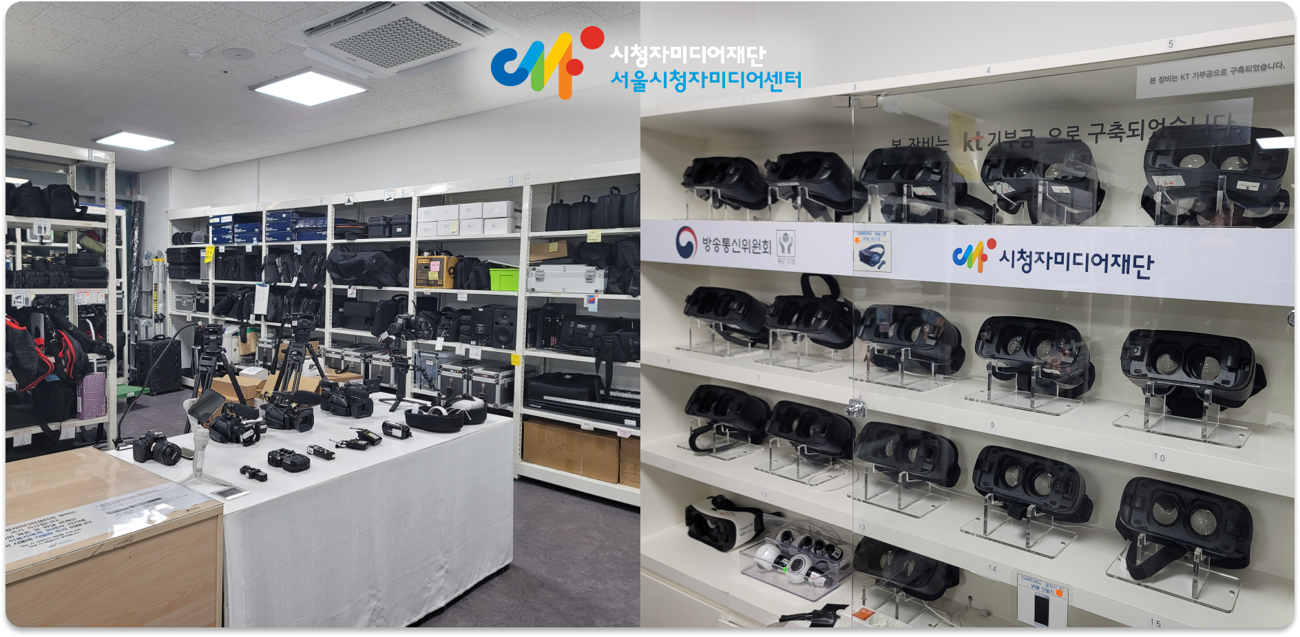 또한, 이번에는 학회원 여러분들에게 VR 기기를 대여해 드릴 수 있었는데요, 이는 서울시청자미디어센터의 도움으로 가능한 일이었습니다. 보통 촬영 쪽으로 해당 센터를 아시는 분들이 많으시겠지만, VR 헤드셋은 물론 AR 글래스도! 있더라구요. |