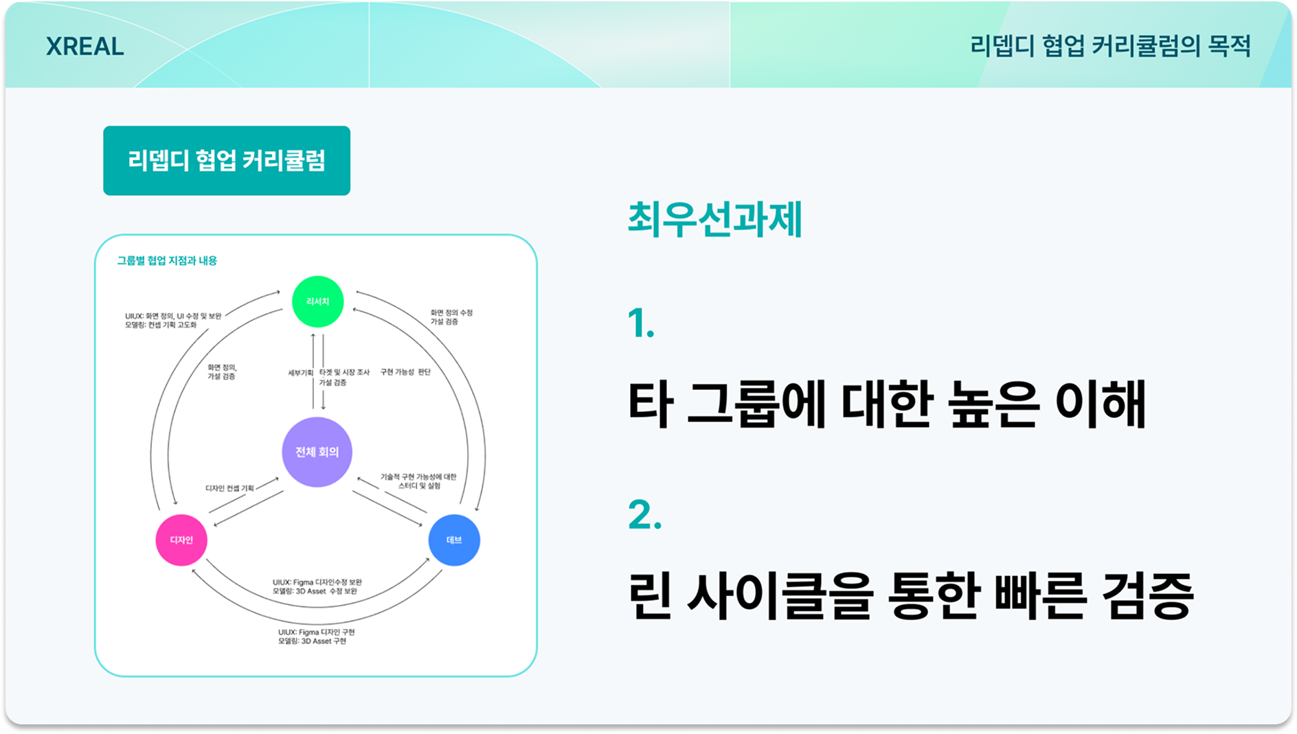그렇게 9기에서도 - XREAL에서 매번 최고 호평을 받는 과정인! - 리·뎁·디 협업 세션을 약 두 달 간 진행하였습니다. 이번에는 역대 최고치, 무려 5개의 프로젝트가 피칭되었는데요, 심지어 각 프로젝트들이 초반부터 높은 완성도를 보이는 것이 정말 인상 깊었습니다. |