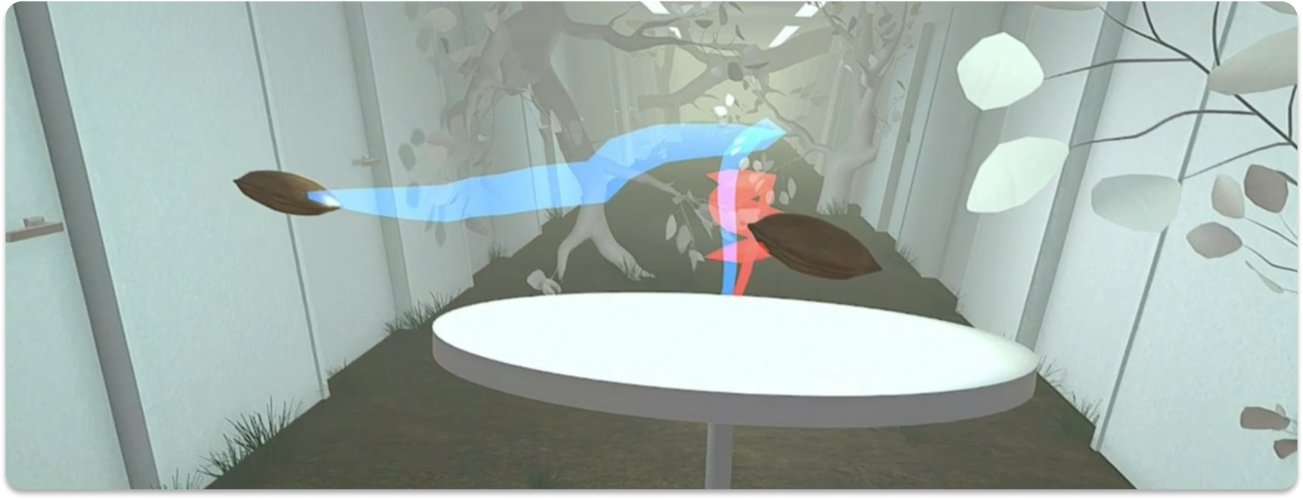 Ghost 팀은 사용자에게 AR 가상 환경과 씨앗을 제시합니다. 그리고 사용자가 씨앗을 옮길 때의 손 움직임을 사실(Fact)로, 이후 동일한 행동을 기억에 의존해 재현했을 때의 움직임을 기억(Memory)으로 정의합니다. 이제 생각해보죠. 처음 사용자는 이 경험을 예상하지 않고, 자연스럽게 씨앗을 옮깁니다. 그리고, 다시 그 움직임을 재현해달라고 부탁을 받았을 때, 사용자는 완벽히 그 궤적을 따라갈 수 있을까요? |