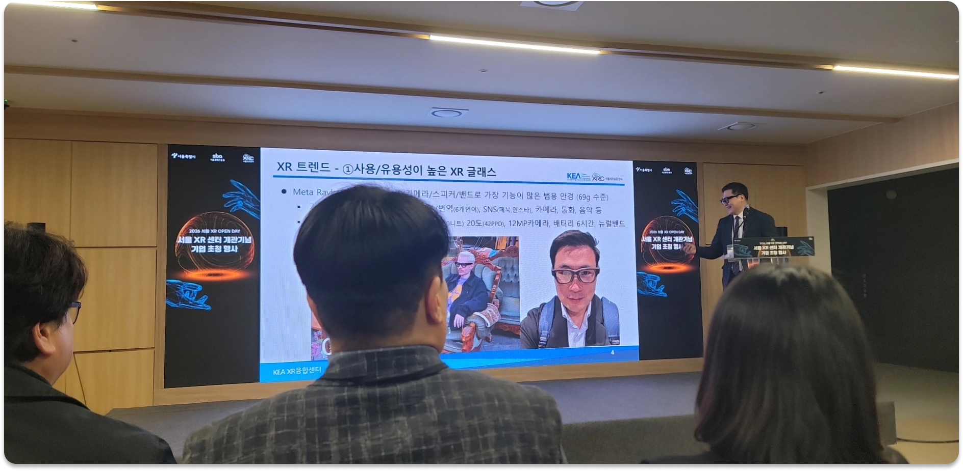 메타-래이밴 디스플레이와 함께 발표를 하신 KEA 홍원기 센터장님 |
