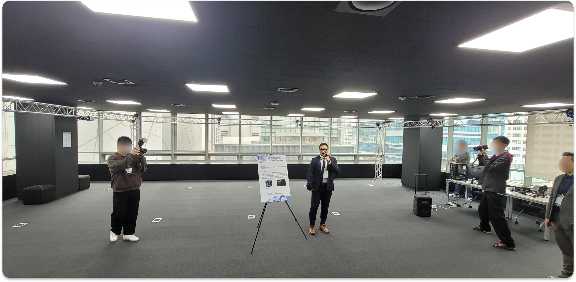 물론 요즘은, 속 편하게 XR을 이야기하는 것이 좋습니다. 애초 오늘 리뷰가, 서울XR센터 개관식 이야기이죠. 이후 이어진 라운딩 행사에서는, 유저 테스트 및 산학협력 등을 위해 마련된 공간과, 대학 연구실에서도 보기 힘든 장비들을 다수 만나볼 수 있었습니다. |