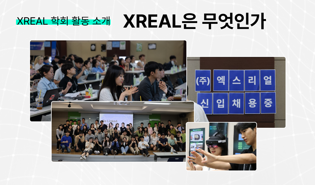 우선 XREAL은, 서울대학교 기반 XR-AI 학회입니다. 대학생과 대학원생 위주로 구성되어 있으며, 창업을 하거나 취업을 한 뒤 개인적인 일을 하면서도 사이드 프로젝트로서 참여하는 OB들 또한 있죠. |