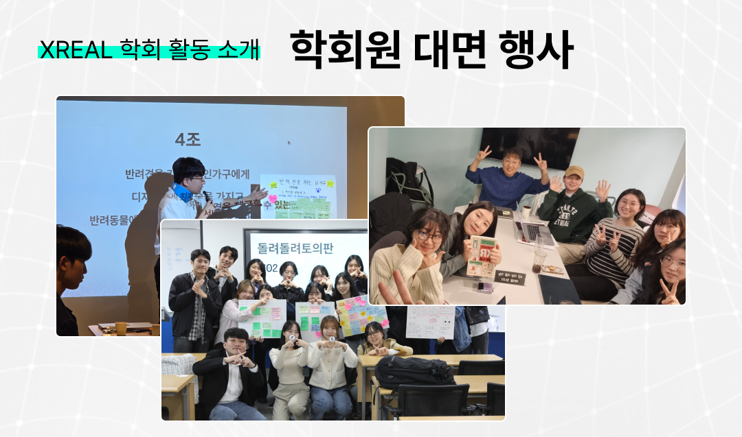 하지만 그렇다고 해서 매번 비대면 활동만 하면 재미 없죠. XREAL은 매 기수 특색 있는 대면 활동을 진행합니다. 대표적으로, 저희 XOLogue의 뉴스레터를 주제로 하여 각자 XR 관련 토론을 하는 '돌려 돌려 토의판'이라는 행사도 있었습니다! 그리고 리뎁디 협업 세션을 맞아 느긋하게 진행했던 '모두 각자 작업' 같은, 네트워킹 기회를 마련하고 있죠. |