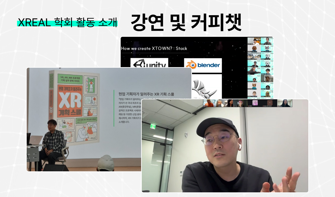 XR UX에 관하여 이름난 해외 대학 교수님들과, 게임계에서 놀랍도록 유명한 PD님, 실제로 VR 게임을 제작 중인 기업의 대표님들, 그리고 XREAL에 큰 도움을 주신 [현업 기획자가 알려주는 XR 기획 스쿨] 저자 배연수 작가님께서도 계시죠. 10기에는 더 많은 강연과 커피챗을 성사할 수 있도록 노력해보겠습니다. |