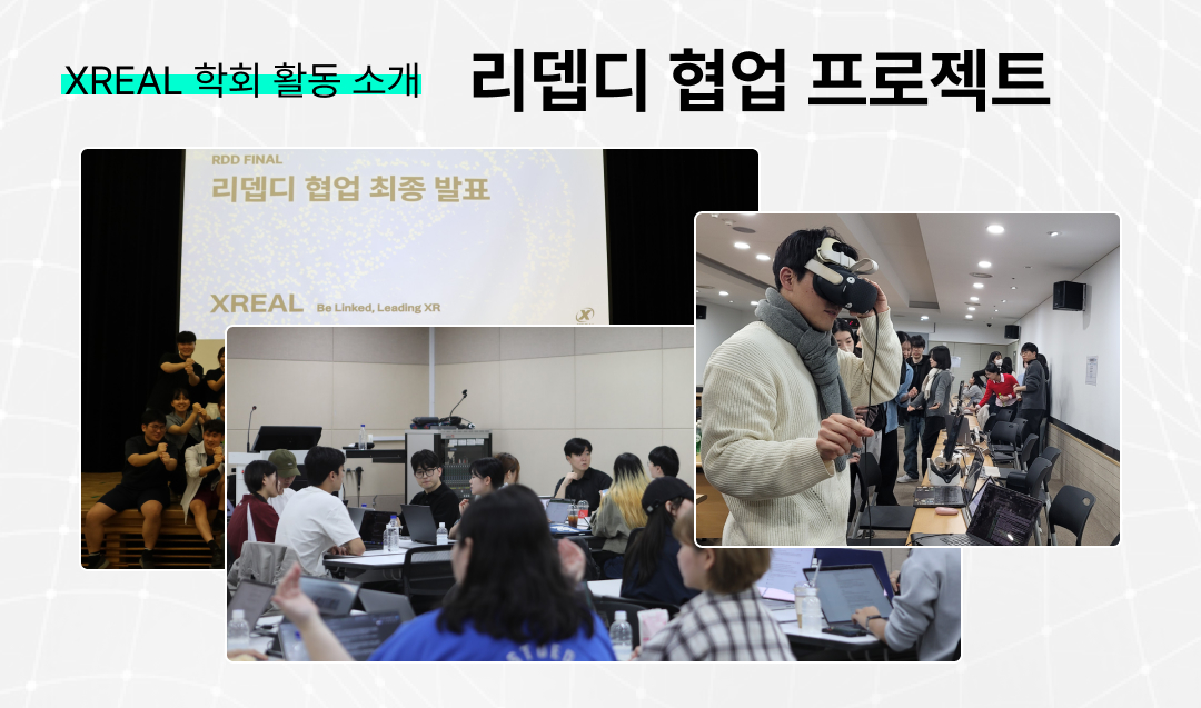 10기 예비 학회원들이 계시다면, 가장 XREAL을 적극 추천하고 싶은 이유가 바로 여기있습니다. 리뎁디 협업 프로젝트. 잘 못 할까봐 걱정되신다고요? 괜찮습니다! 협업의 대상 또한 같은 주니어 학회원들이거든요. |