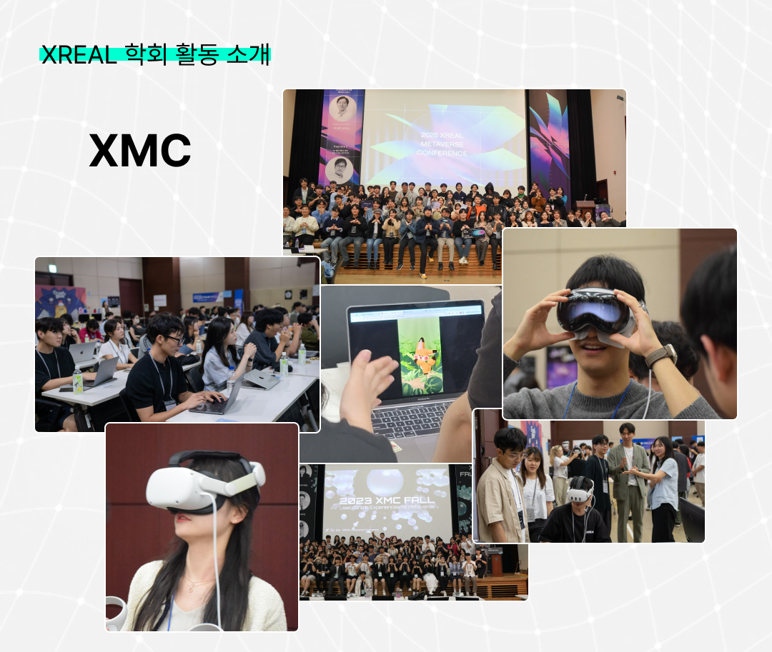 또한, 외부의 세미나와 행사 등에도 XREAL 차원에서 참여한 전적이 다수 있습니다. 학회 내의 프로젝트들이 홍보할 기회 또는 기업들과 맞이할 기회를 제공하고자 합니다. |